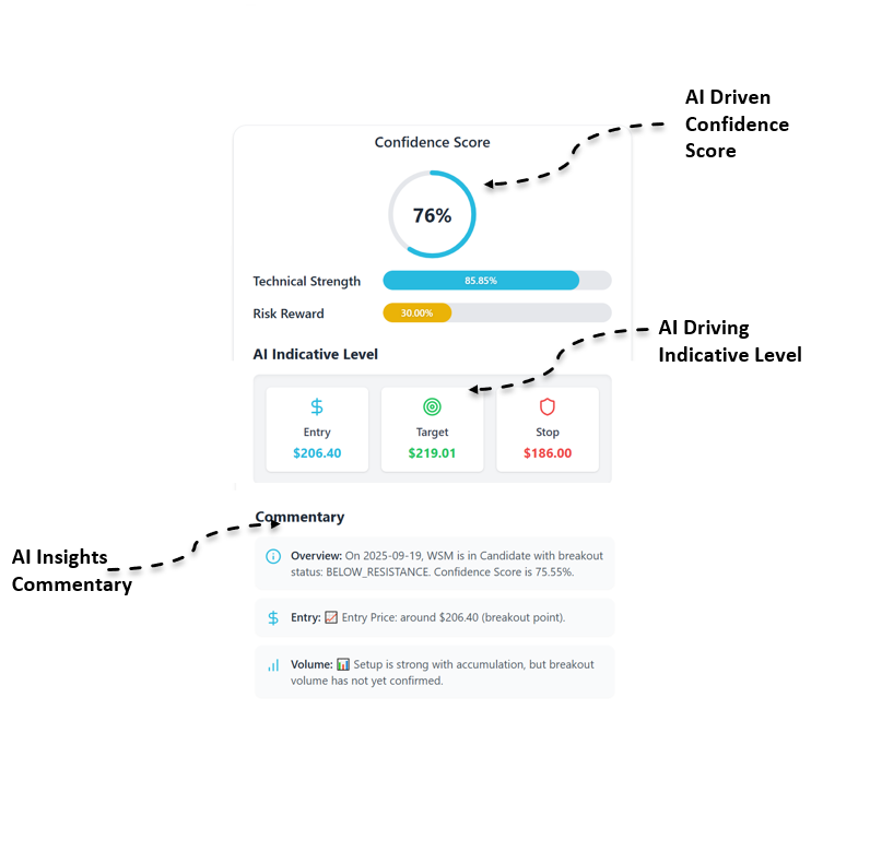Run AI score on technical strength, risk-reward, etc. to bring clarity